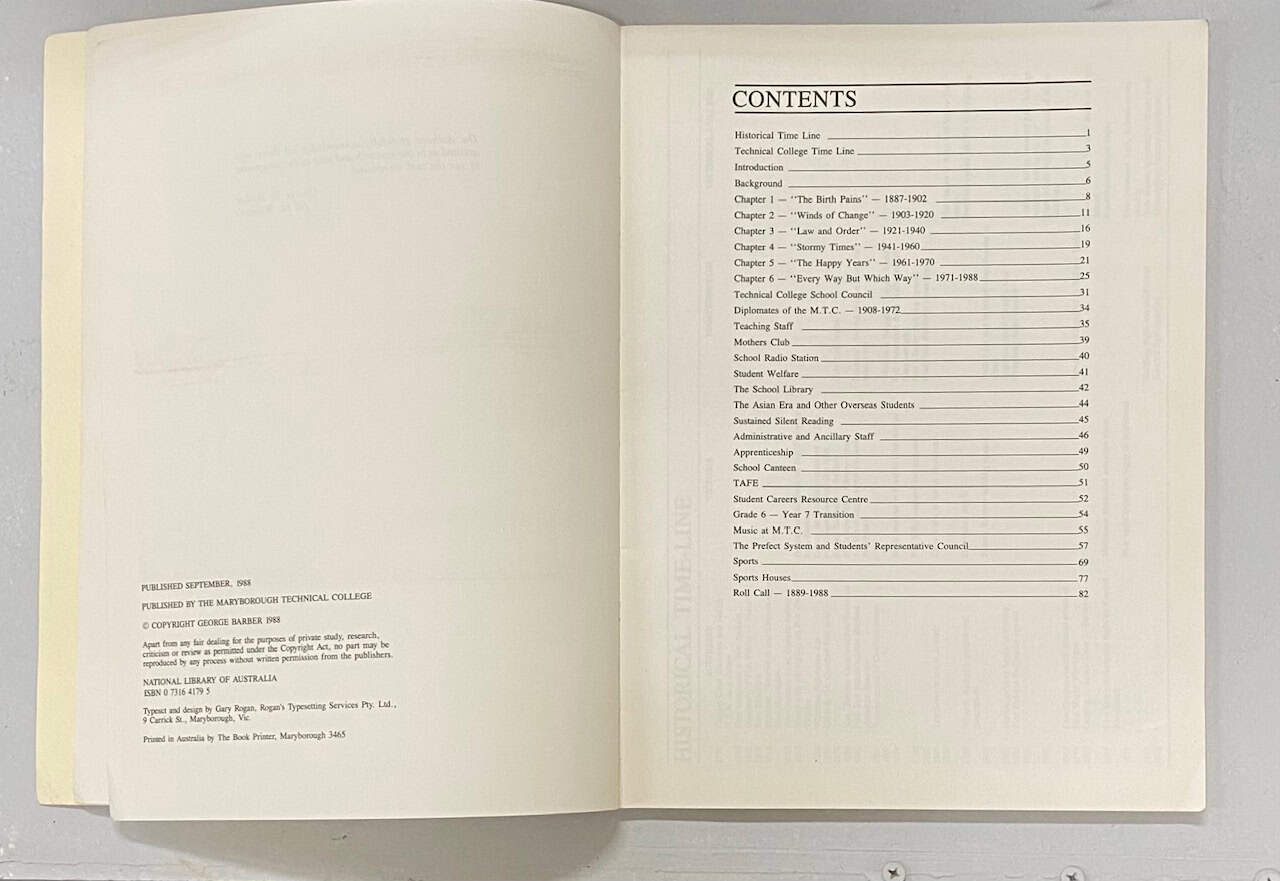 100 Years At The Maryborough Technical College, G. W. Barber & J. M. Williams 1988