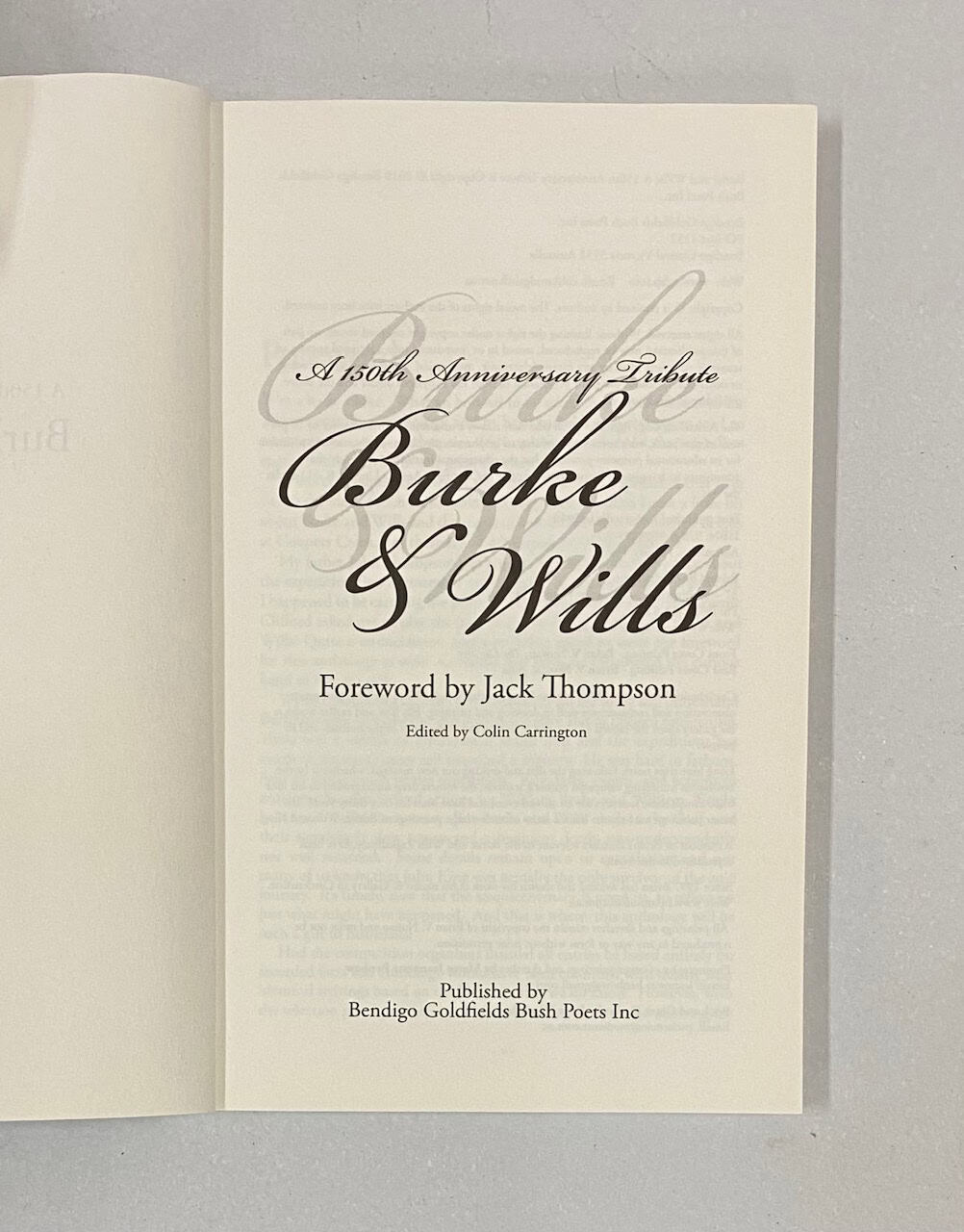 An anthology of the best short stories and rhyming verse poetry entered in the Bendigo Goldfields Bush Poets Inc. Burke and Wills 150th Anniversary competitions by adults and school students. The foreword has been written by Jack Thompson. The book has been edited by Colin Carrington and published by Bendigo Goldfields Bush Poets Inc. Please refer to the photos provided as they are of the book you will receive. Any questions? Please get in touch prior to purchase.