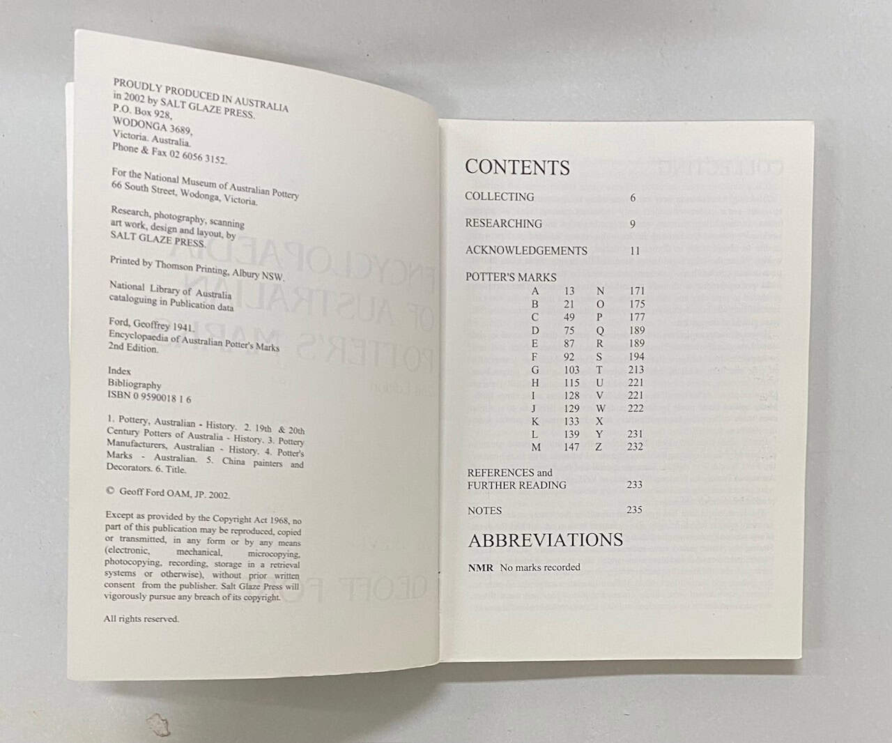 This 2nd Edition supersedes the first edition and continues to document pre 1975 Australian potters and their potteries. This is a very hard to find publication and a wonderful resource. A further 600 marks have been added to this edition. Please refer to the photos provided as they are of the book you will receive. Any questions? Please get in touch prior to purchase.